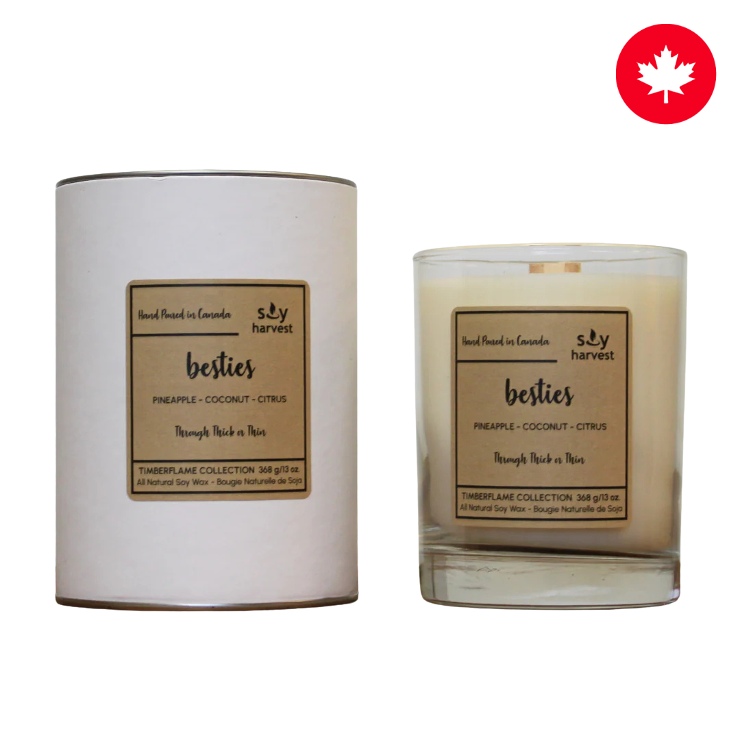 Indulge in the cozy and heartwarming ambiance created by our Besties Candle. Handcrafted with care, this scented all natural wax candle is a delightful mix of pineapple, citrus and light coconut that will uplift your spirits and soothe your senses.