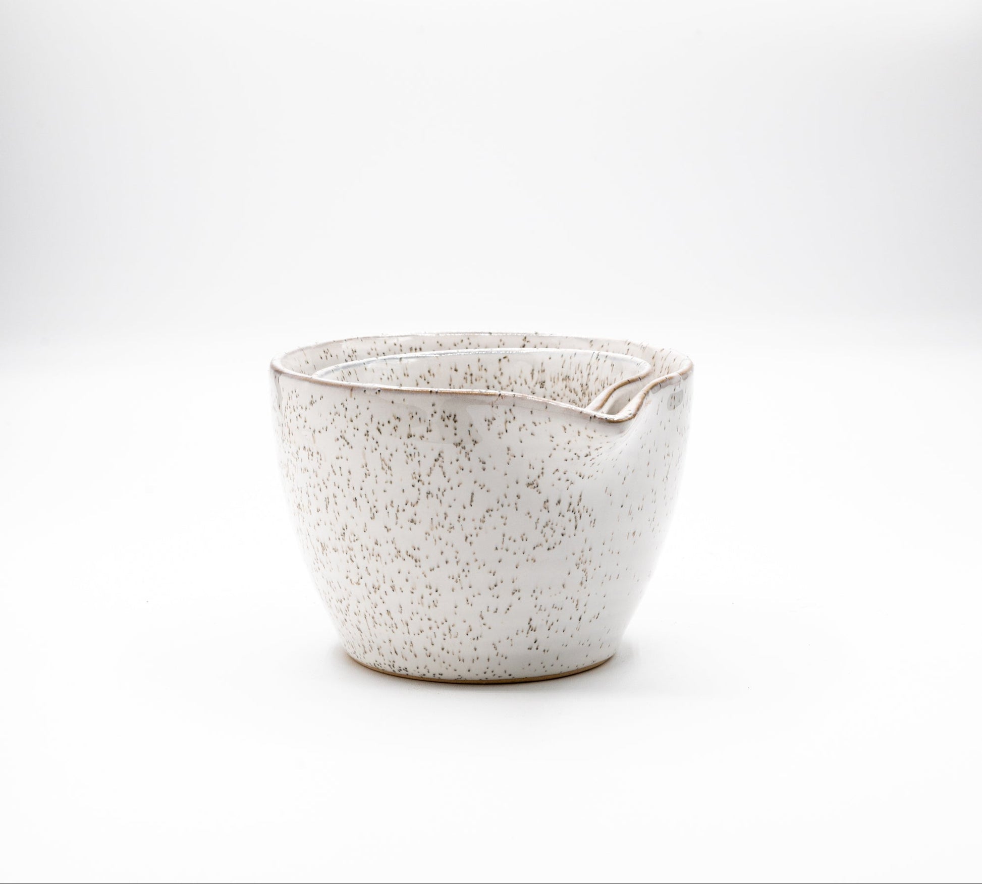 A stylish kitchen essential—this set three of speckled, glossy nesting bowls with spouts is perfect for mixing, pouring, and displaying with rustic charm.