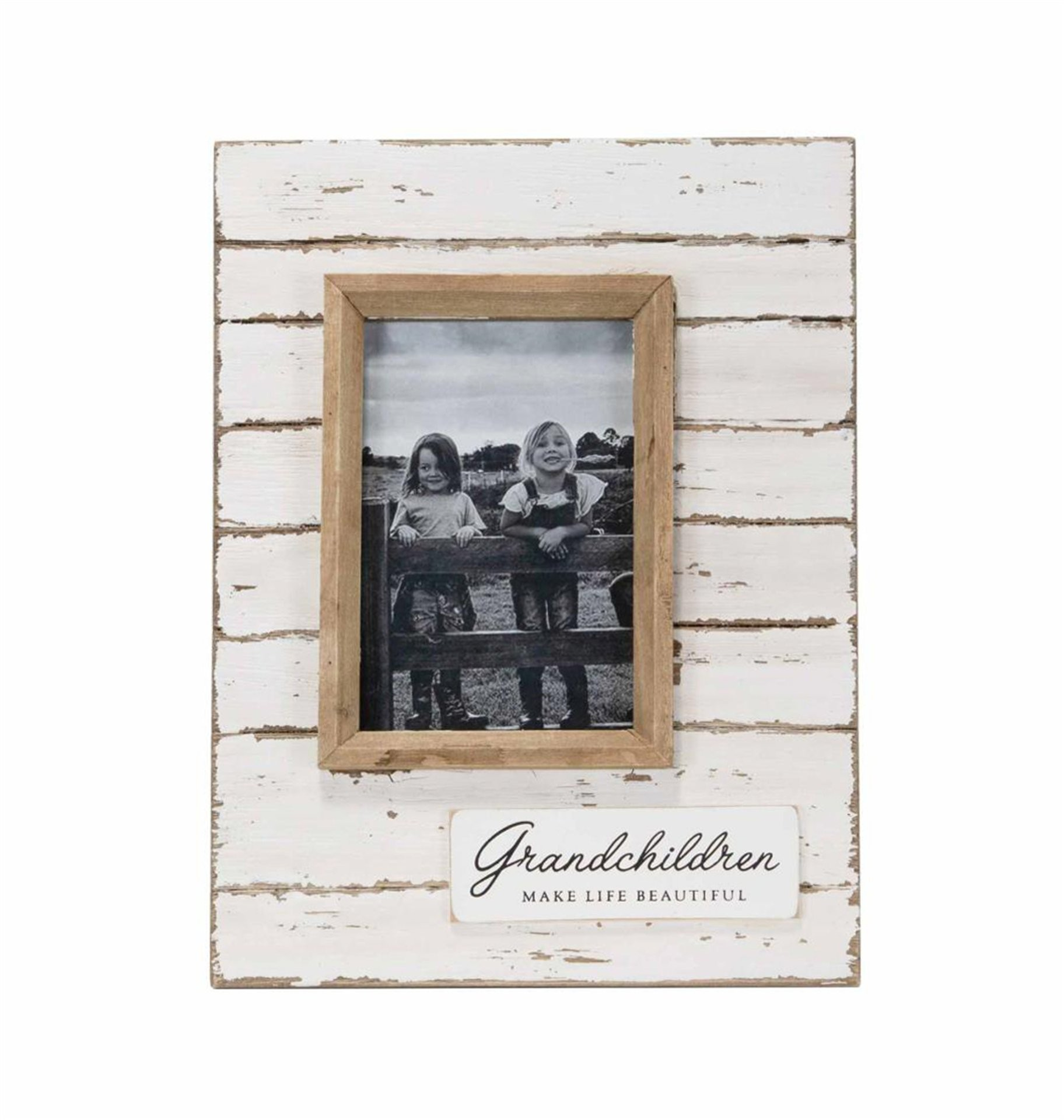 Showcase your love with this charming distressed wood frame, perfect for displaying sweet moments with your grandkids. “Grandchildren make life beautiful.”