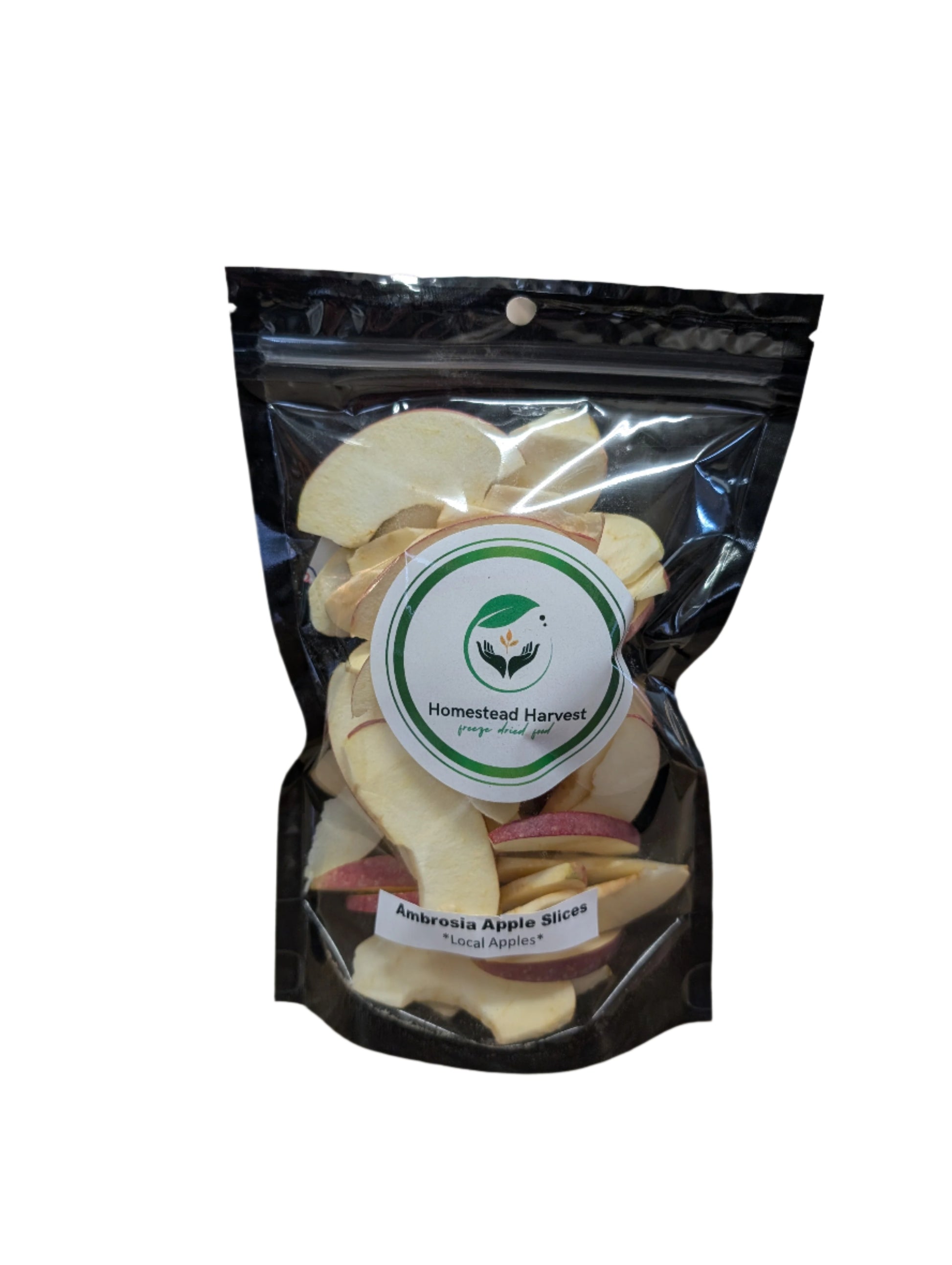 Freeze-dried Ambrosia Apple Slices: 97% nutrients retained, no chemicals, bright color, long shelf life, light & airy, kid-approved, the perfect healthy snack!