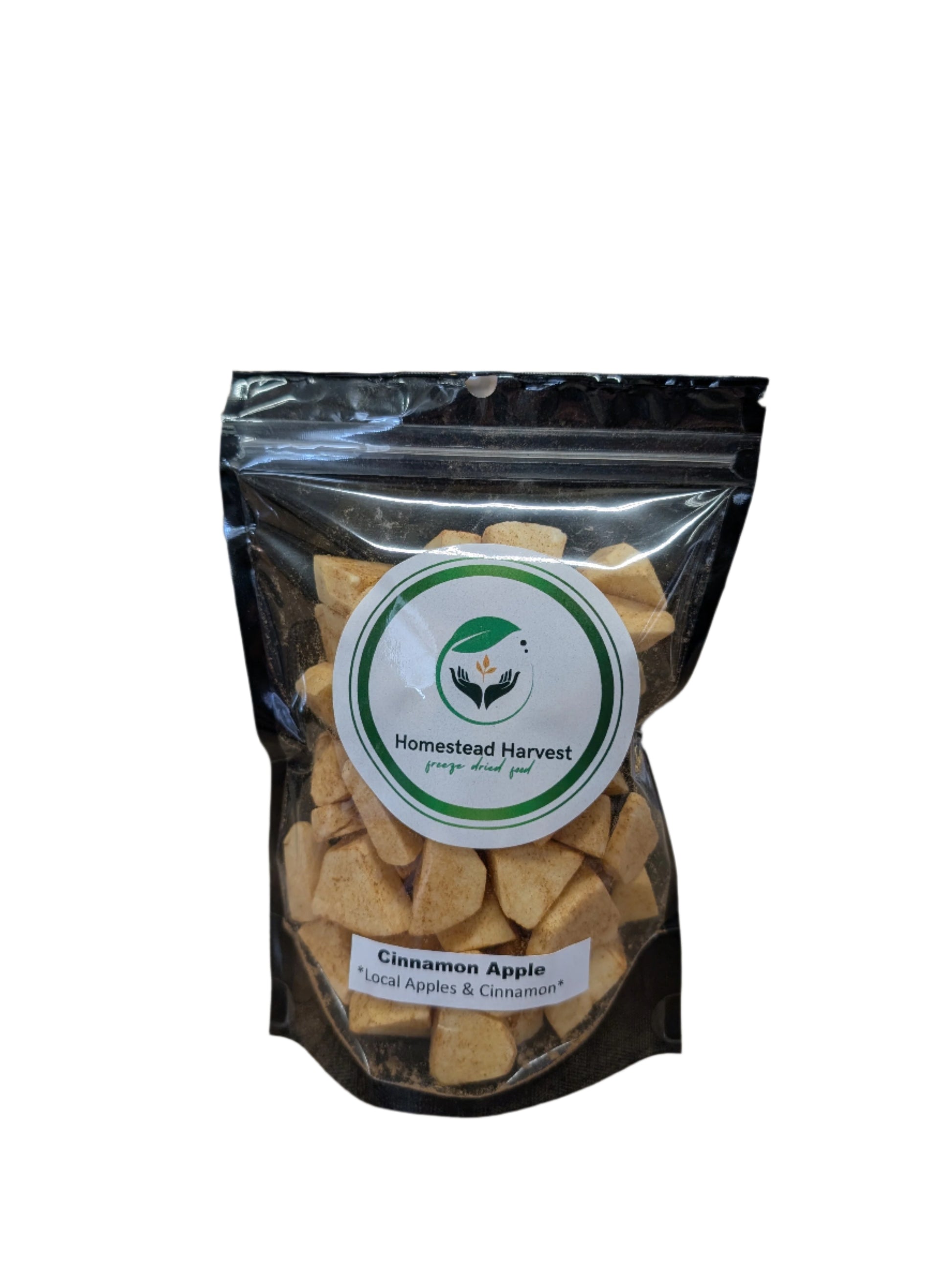 Freeze-dried Cinnamon Apple Slices: 97% nutrients retained, no chemicals, bright color, long shelf life, light & airy, kid-approved -- the perfect healthy snack!