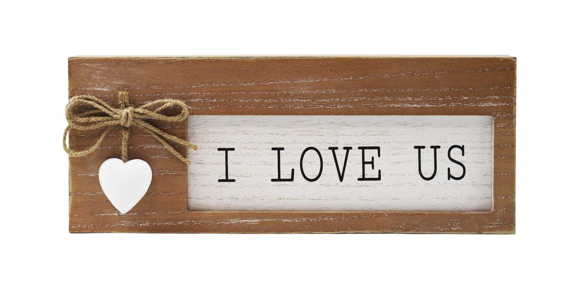 Rustic wood sign with “I LOVE US” message, accented with a twine bow and heart. A heartfelt gift for weddings, anniversaries, or celebrating love.