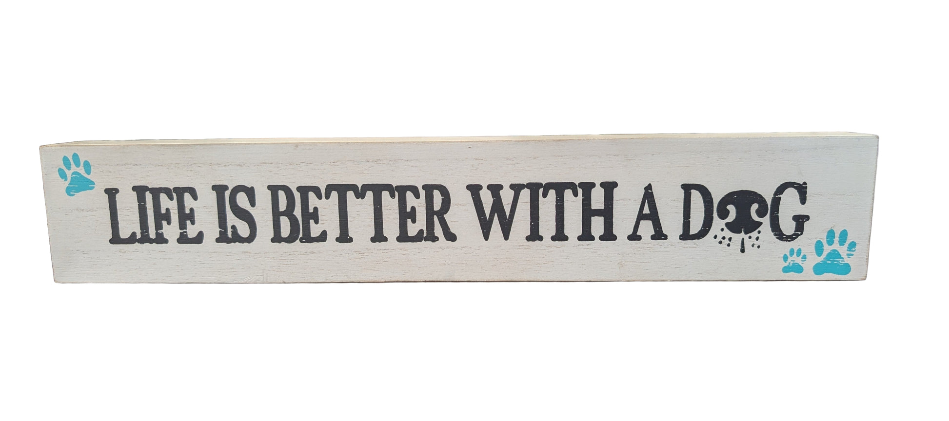 "Celebrate your furry friend with this charming desk block. Reads 'Life is better with a dog'—perfect for adding warmth and joy to any space."