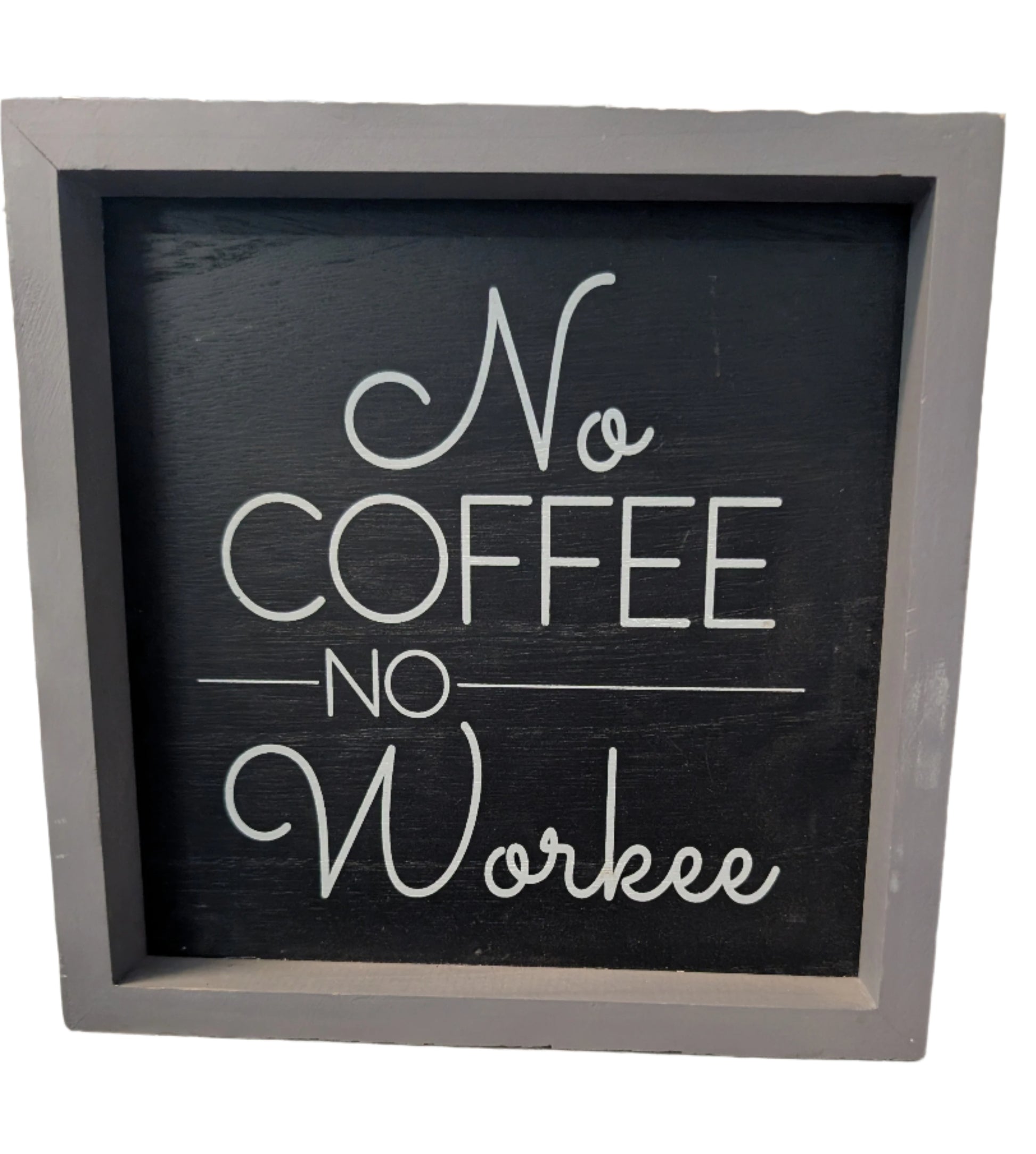 Add a fun touch to your space with this “No Coffee, No Workee” sign—perfect for coffee bars, kitchens, or offices. A must-have for caffeine lovers!