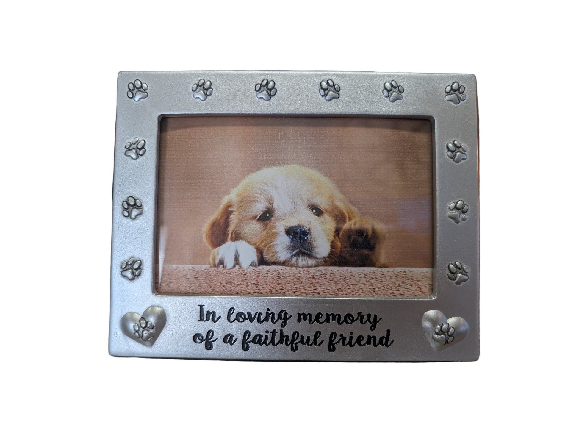 Honor your beloved companion with this heartfelt frame. Reads 'In loving memory of a faithful friend'—a touching tribute to cherished pets.