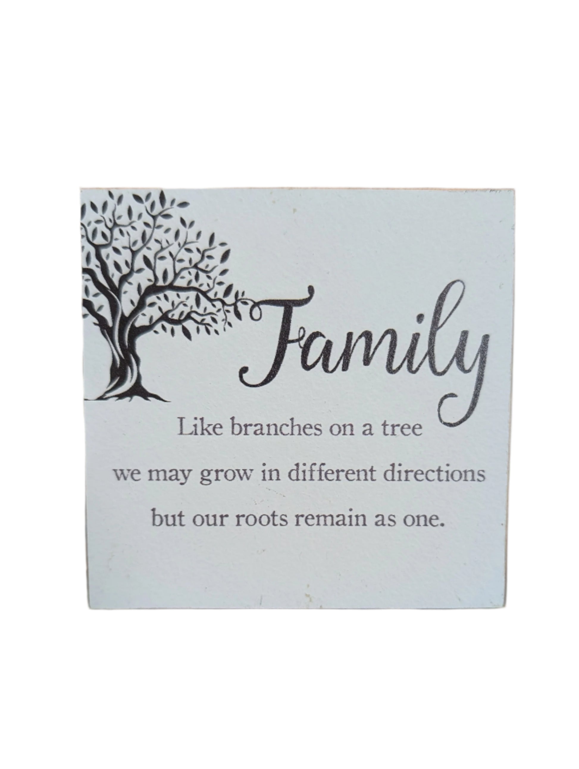 Celebrate the strength of family with this heartfelt desk block, featuring a tree-inspired quote that reminds us of our shared roots, no matter the distance.