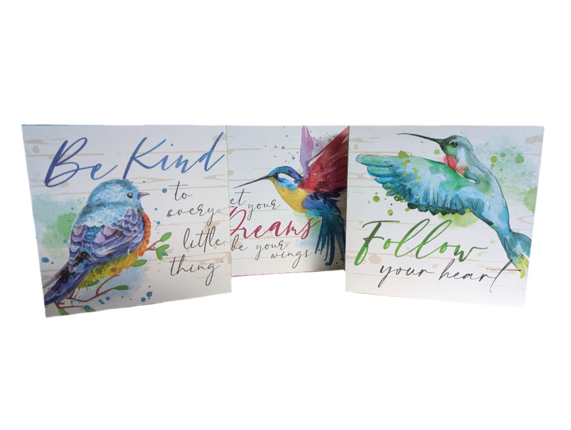 Charming bird blocks with uplifting quotes to brighten any desk or shelf.